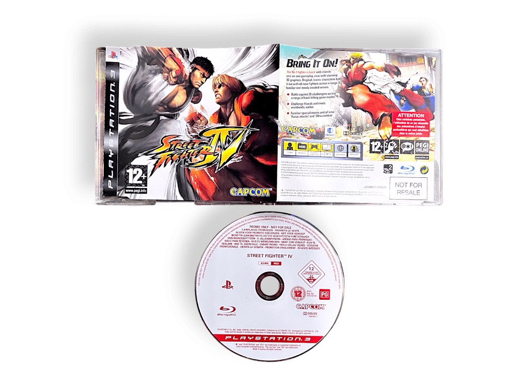 Street Fighter IV revived the legendary fighting series with 2.5D visuals, classic mechanics, and modern presentation. Featuring iconic characters and competitive depth, it reintroduced Street Fighter to a new generation. This promotional Blu-ray disc is marked not for resale.