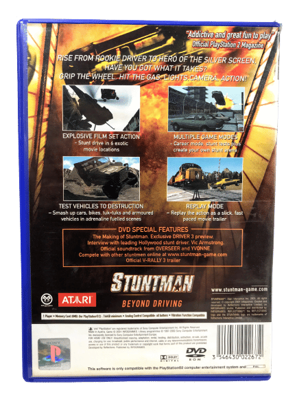 Excellent condition and 100% complete with contents: STUNTMAN the Original Game for SONY PlayStation 2 / PS2. This preowned game is in superb condition and comes complete with case + cover + manual / booklet + game disc. WHEN STOCK REDUCES TO SHOWING ONLY ONE UNIT IN STOCK, THE MANUAL IS NO LONGER INCLUDED.