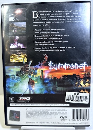 SUMMONER The Game for SONY PlayStation 2 / PS2. This preowned game comes complete with case, cover, manual / booklet, and game disc. Game disc has visible light scratches and we recommend getting the disc resurfaced if this game is to be playable.
