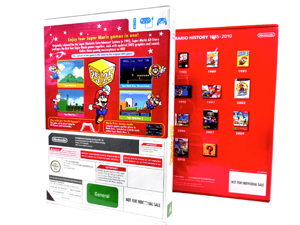 Genuine Limited 2-DISC Edition: SUPER MARIO ALL STARS 25th ANNIVERSARY EDITION / Super Mario AllStars 25th Anniversary Edition for Nintendo Wii. This preowned game is in pristine condition and includes: