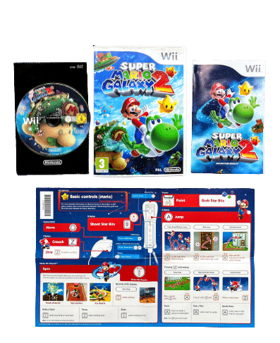 Super Mario Galaxy 2 / SUPER MARIO GALAXY TWO / Super Mario Galaxy II Special 2 for NINTENDO Wii. This preowned game is in excellent condition and includes case + cover + manual / booklet + instructional poster + game disc. The poster has some light paper creasing, but everything else is fantastic.