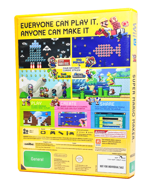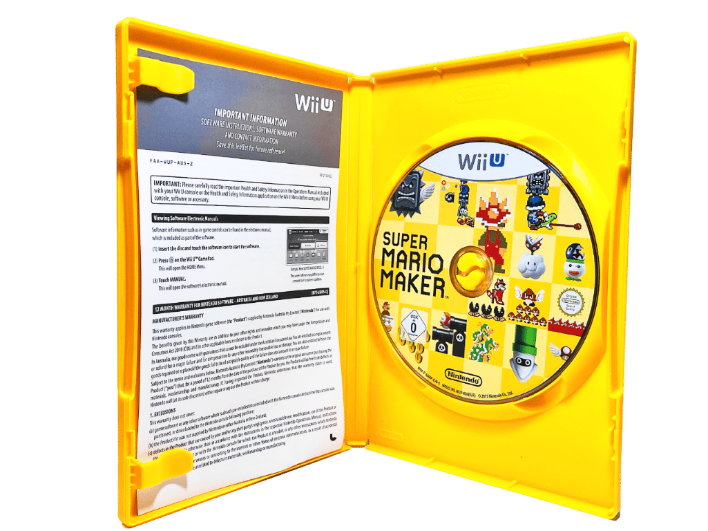 Mint condition & complete with contents: SUPER MARIO MAKER for Nintendo Wii U. This preowned game is in superb condition, and comes complete with Official Mario Maker YELLOW Wii U Case, Cover, Nintendo Wii U Card, and Game Disc.