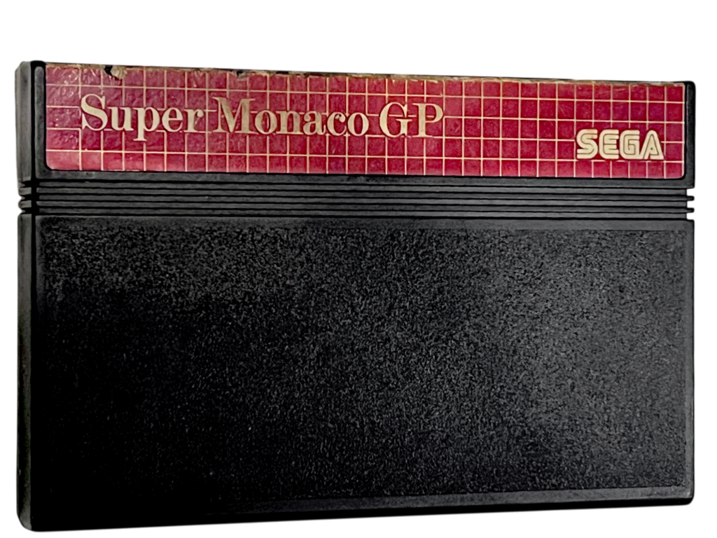 Super Monaco GP (Sega Master System) Cartridge. This preowned Sega Master System game cartridge is in good condition with some expected sticker wear. Refer images. Cartridge only. No box.