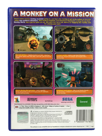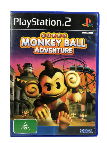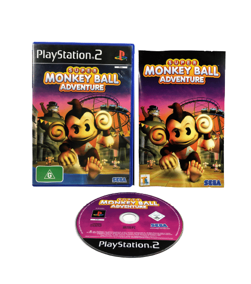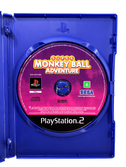 SUPER MONKEY BALL ADVENTURE for SONY PlayStation 2 / PS2. This preowned game is in very good condition with mild disc surface imperfections only, and comes complete with case + cover + manual / booklet + game disc.