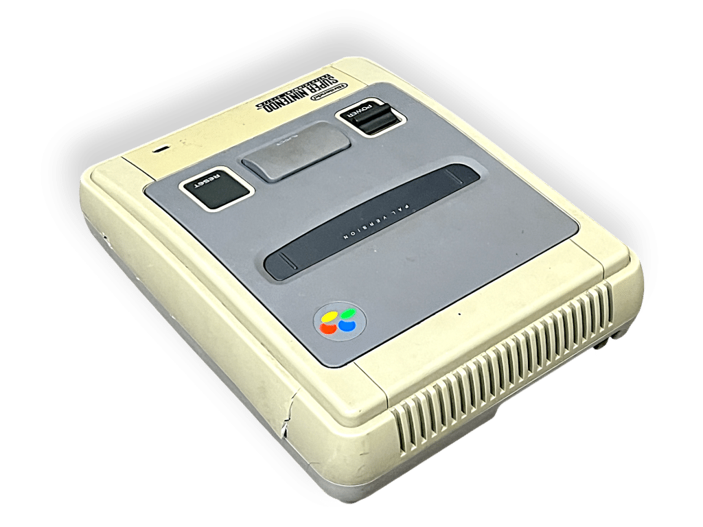 Super Nintendo Entertainment System (SNES) Console Bundle (Console, Controller, Cables) This pre-owned Super Nintendo Entertainment System (SNES) Console Bundle (Console, Controller, Cables) As in perfect working order. There is some yellowing and a small plastic blemish on the side of the console, which I photographed up close. Neither of these cosmetic imperfections inhibit the bundle’s perfect functionality in any way. Refer photographs.