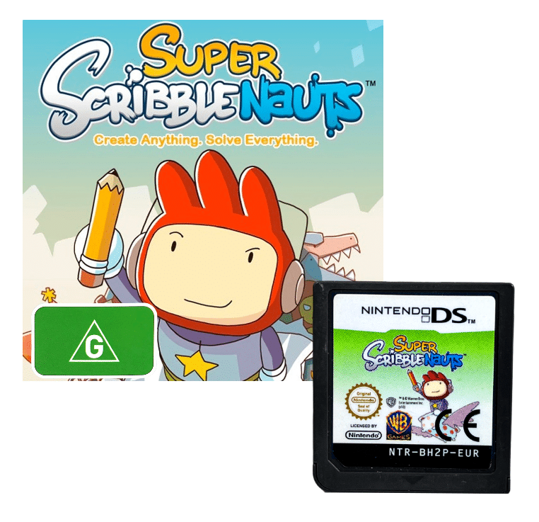 SUPER SCRIBBLENAUTS for NINTENDO DS. This preowned game cartridge is in good condition and comes inside a miniature plastic case. Please note that the original case is NOT included.