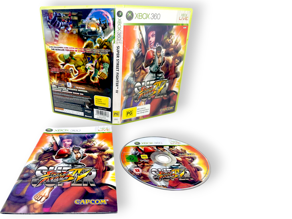 Super Street Fighter IV (Xbox 360) *MINT COMPLETE*. This preowned game is in excellent condition and includes pictured contents. Refer photographs.