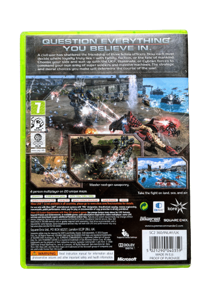 Excellent condition & 100% complete with contents: SUPREME COMMANDER 2 for Xbox 360. This preowned game is in superb condition and comes complete with case, cover, manual / booklet, and game disc.