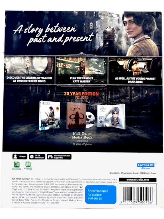 Syberia: The World Before 20 YEAR EDITION (PS5) *BOXED COLLECTOR’S EDITION* for SONY PlayStation 5 / PS5. This preowned authentic Limited Collector’s Edition is in pristine condition and comes complete with box + hardcover book + inner contents + game disc. A tidy and complete collector’s item.