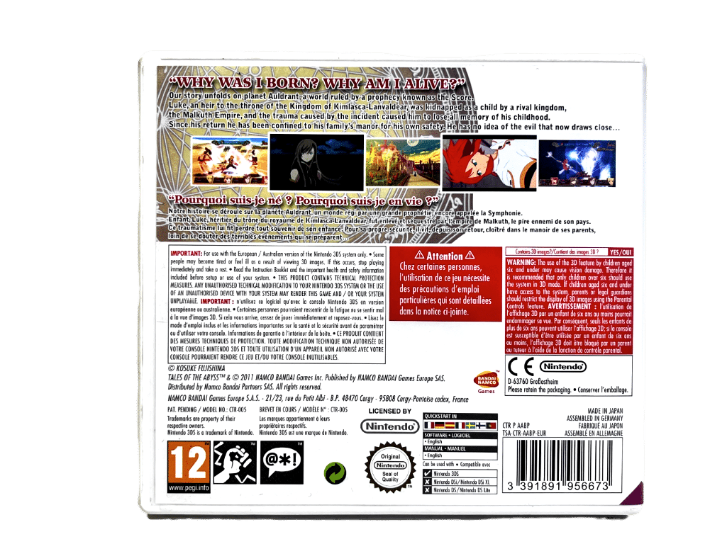Excellent condition & 100% complete with contents: TALES OF THE ABYSS for Nintendo 3DS. This preowned game is in superb condition and comes complete with case + cover + manual / booklet + Brand New Unscratched Nintendo Club Leaflet + game cartridge. A tidy and complete collector’s item. Refer photographs .