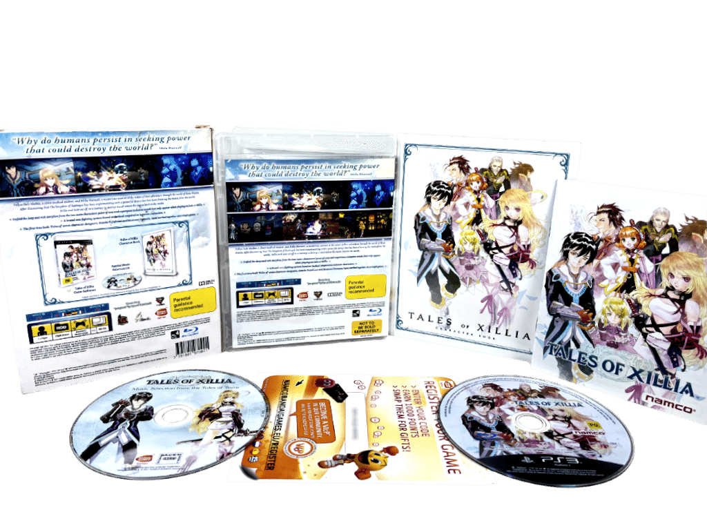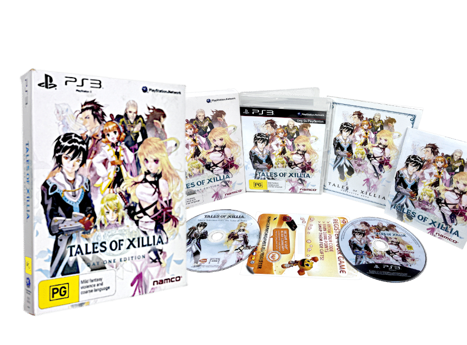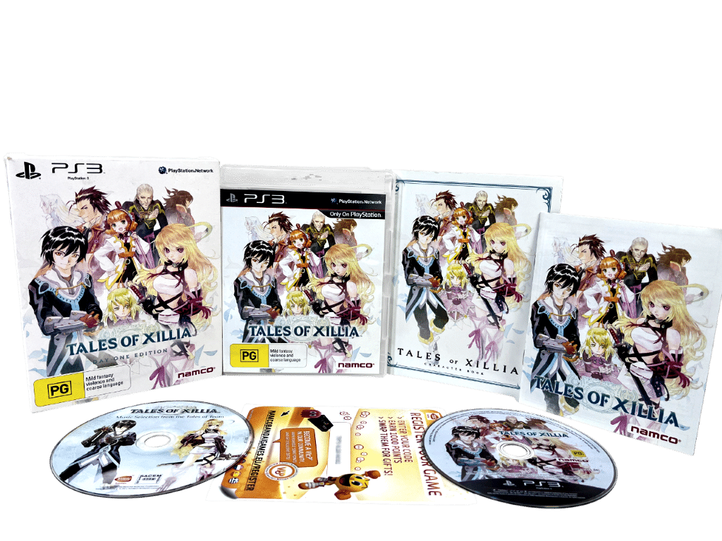RARE & Collectible Boxed Edition in Mint Condition & 100% Complete with ALL DAY ONE COLLECTOR’S CONTENTS: Tales of Xillia Day One Edition for SONY PlayStation 3 / PS3. This preowned authentic Limited Boxed Collector’s Edition is in pristine condition – meticulously cared for since new. A tidy and complete collector’s item.