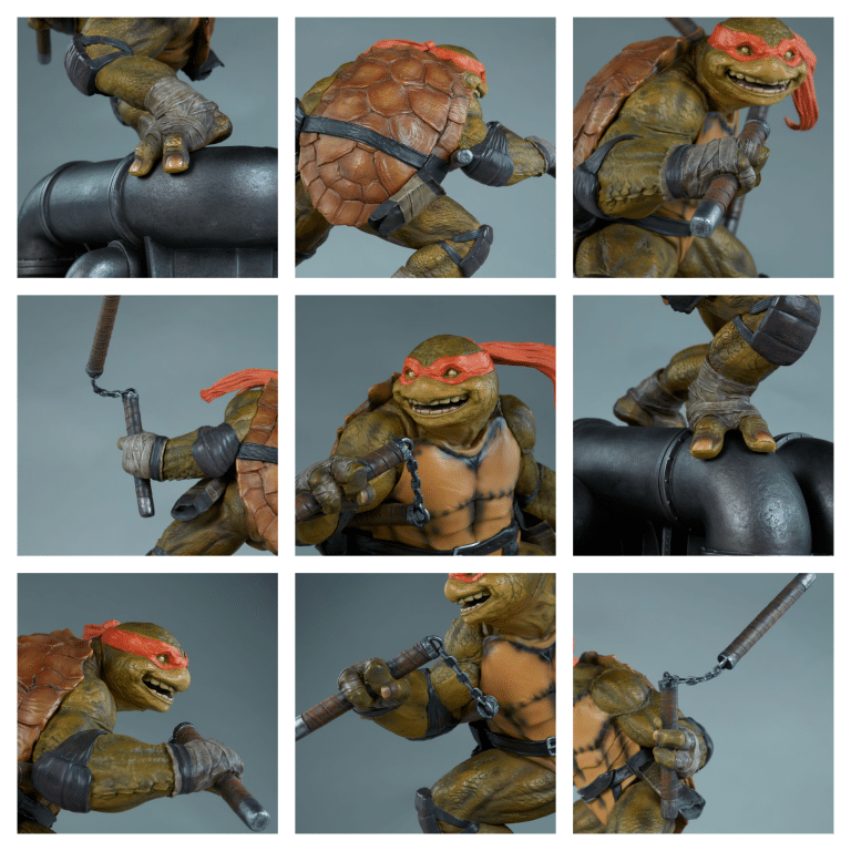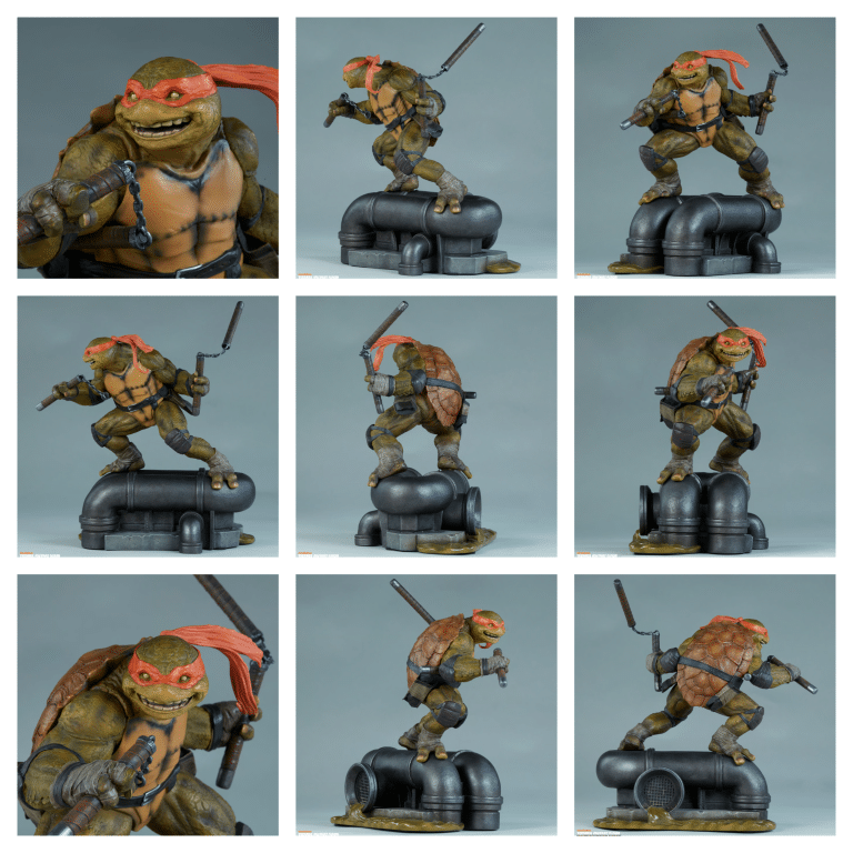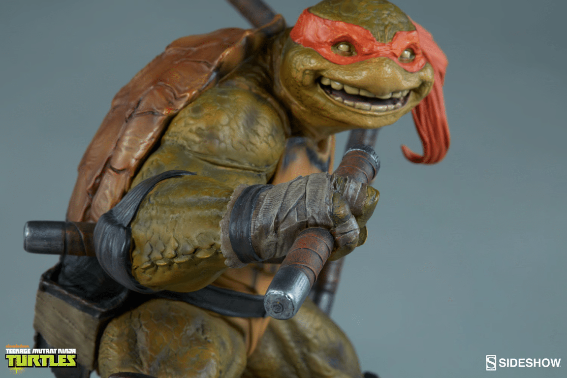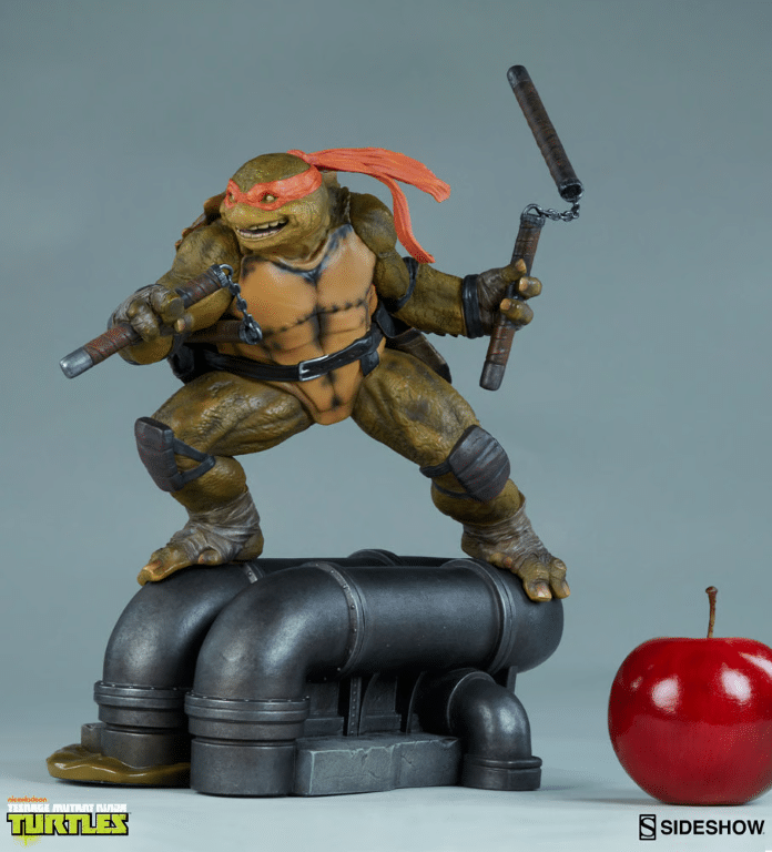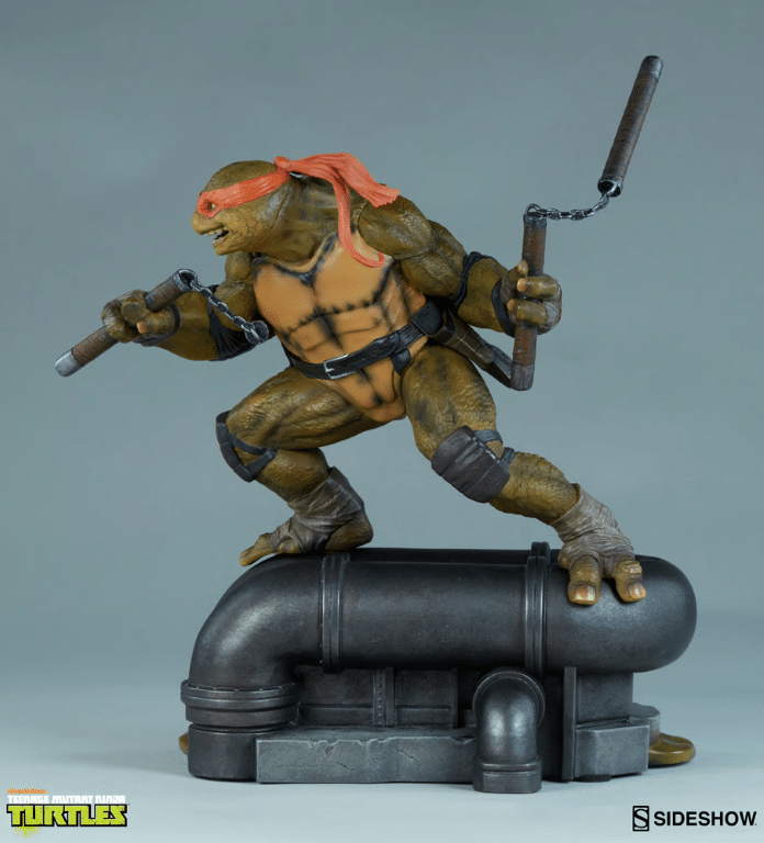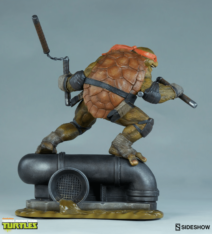 Featuring Michelangelo in a pose that is ready to leap off his sewer themed base, the artists at Sideshow capture the fluid ninja-like grace…of a turtle.
