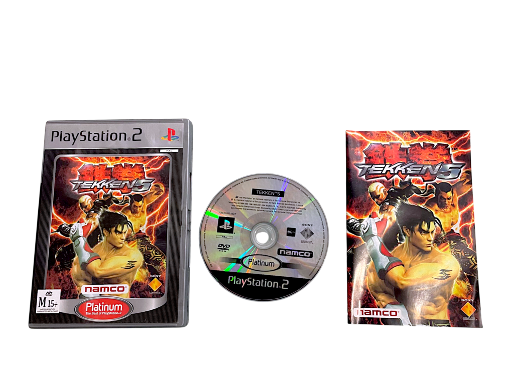 Tekken 5 (PS2). This pre-owned Sony PlayStation 2 game is in good condition with mild markings and superficial scratches only, which do not hinder gameplay or performance in the slightest. This game comes with a warranty. This game includes the pictured contents. Refer to the photographs.