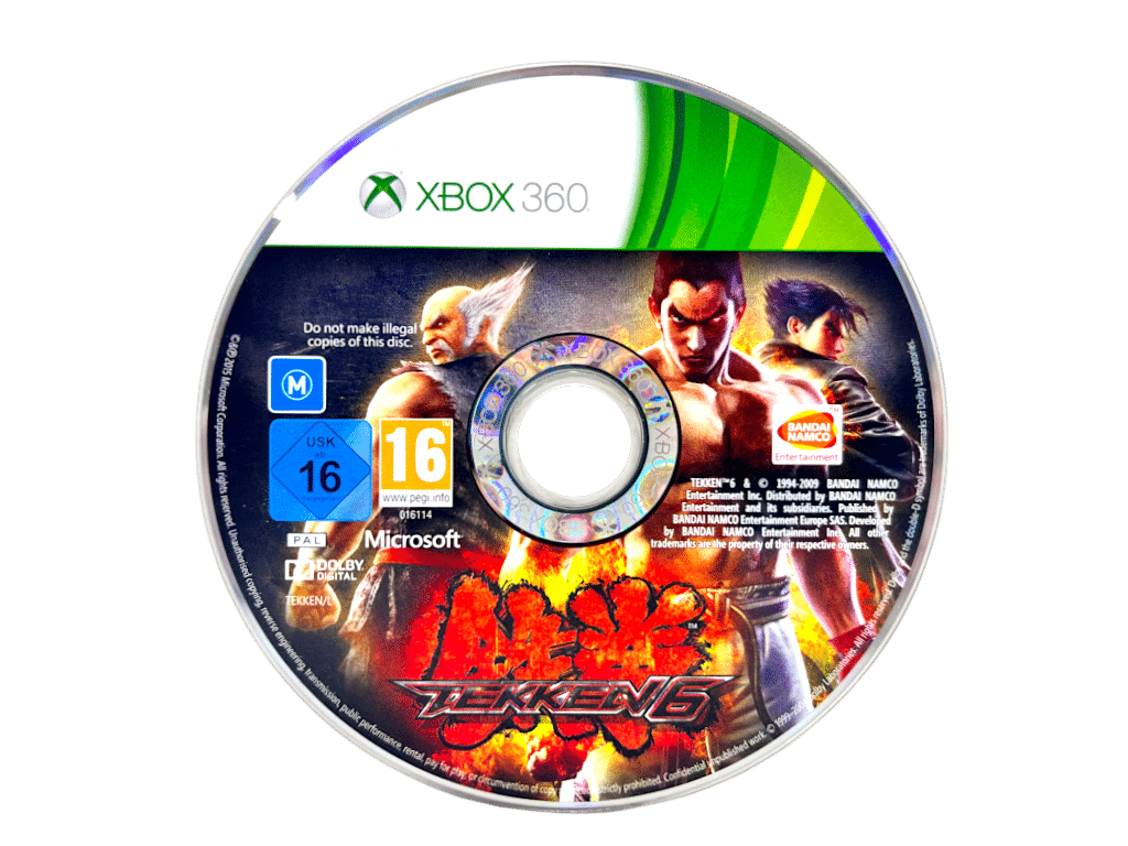 TEKKEN 6 for XBox 360. This preowned game disc is in very good condition with faint markings and superficial scratches only. Disc comes inside an empty blank case. Please note that the original case is NOT included.