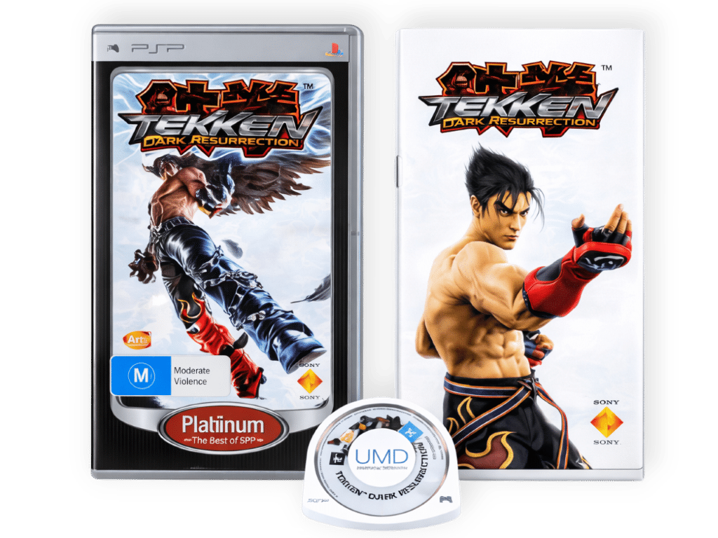 Tekken Dark Resurrection (PSP) for SONY PSP / PlayStation Portable. This preowned game is in excellent condition and includes genuine Platinum Edition case, cover, instruction manual / booklet and game desk inside its miniature UMD case.