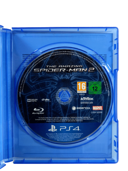 RARE FIND: Mint condition & 100% complete with contents: THE AMAZING SPIDER MAN 2 / The Amazing SpiderMan 2 for SONY PlayStation 4 / PS4. This preowned game is in excellent condition and comes complete with case, cover, and game disc (no booklet was ever bundled with this game). This game also includes an additional bundled Spider-Man promo card (the voucher code will have expired – but this is an add-on only and in no way required for game play), folded neatly inside the case. A very tidy collector’s item – in pristine condition.