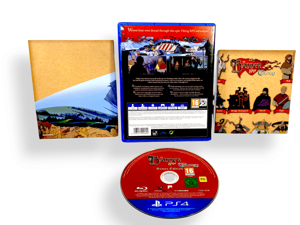 The Banner Saga Trilogy – Bonus Edition (PS4). This preowned game is in mint condition and complete with pictured contents. A lovely collector’s item.