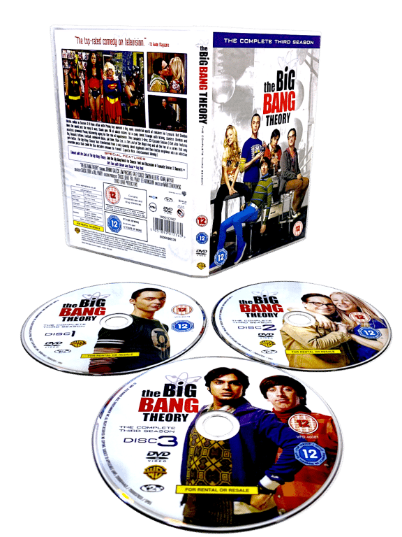 The Big Bang Theory: The Complete Third Season DVD. This preowned item is in excellent condition and complete with original case + cover + any pictured internal cards / booklets + disc/s. Refer photographs.