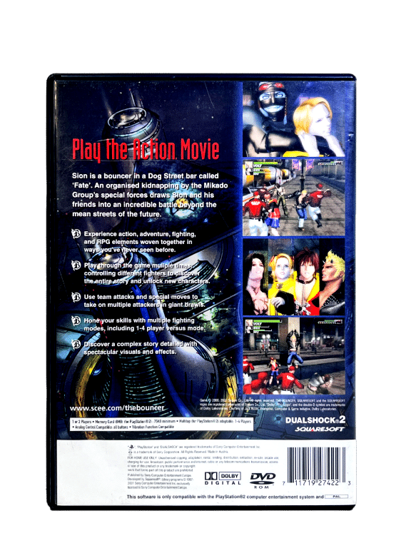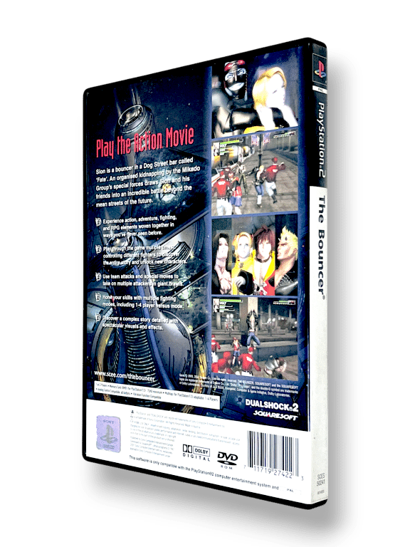 Squaresoft’s ambitious PS2 action battle game combines a four-person fighting system with an adventure component. Spectacular lighting effects and massive street brawls with marauding gangs bring The Bouncer to life.