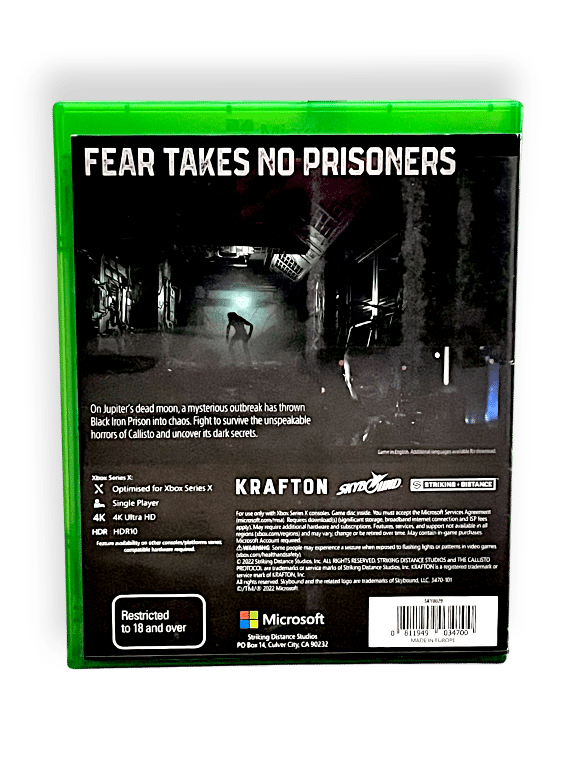 The Callisto Protocol DAY ONE EDITION / The Calisto Protocol Day 1 Edition for Xbox Series X. Preowned, and in excellent condition – complete with case + cover + promo card + game disc. Please note that the voucher for the DLC expired in 2024 but this was a promotional download only and is not required for gameplay or completion. The FULL Callisto Protocol game is contained on the game disc.