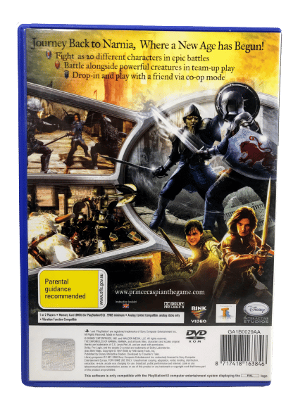 The Chronicles of Narnia PRINCE CASPIAN / The Lion, The Witch, and the Wardrobe Narnia Prince Caspian for SONY PlayStation 2 PS2. This preowned game is in excellent condition and includes original case, cover, manual and game disc.