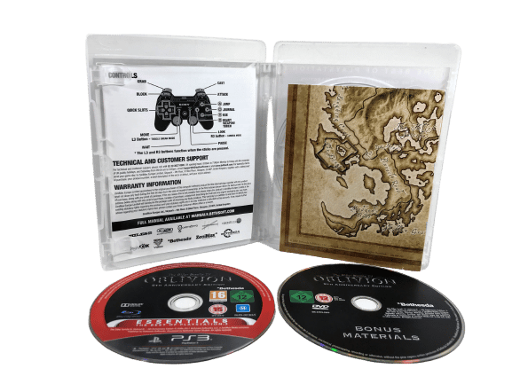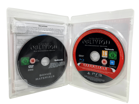 RARE FIND: Special 2 Disc Edition in excellent condition and including BOTH Game disc and Special Bonus “5th Anniversary Edition Bonus Materials” disc AND game disc: The Elder Scrolls IV Oblivion 5th ANNIVERSARY EDITION for SONY PlayStation 3 / PS3. This preowned game is in excellent condition and includes case + cover + manual / booklet + game disc.