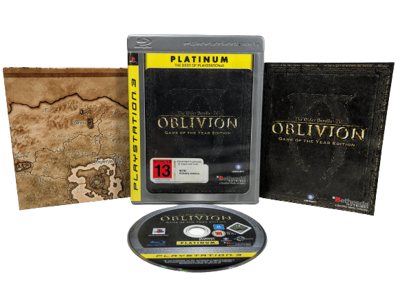 RARE FIND: excellent condition & 100% complete with ALL contents, including BOTH manual AND map: The Elder Scrolls IV Oblivion GAME OF THE YEAR EDITION for SONY PlayStation 3 / PS3. This preowned game is in superb condition and comes complete with case + cover + manual / booklet + Map + game disc. A tidy and complete collector’s item.