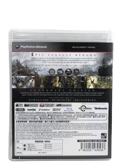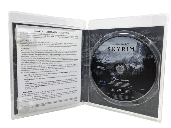 The Official “Legendary Edition” with authentic Legendary Edition (and the ORGINAL PRINT – non-Essentials edition): The Elder Scrolls V Skyrim LEGENDARY EDITION for SONY PlayStation 3. This preowned game is in good condition and includes case + cover + map and sticker + game disc.