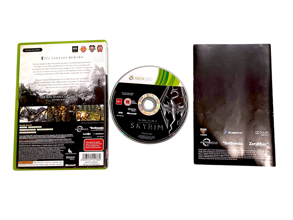 The Elder Scrolls V: Skyrim (Xbox 360). This pre-owned game is in good condition with mild disc surface imperfections only which do not hinder gameplay or performance in any way. This game includes the pictured case and contents. Refer to the photographs.