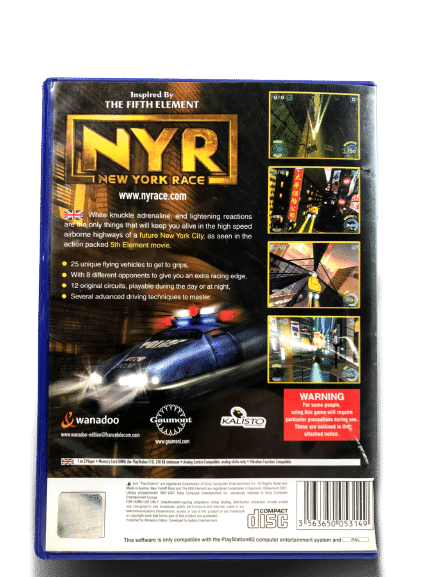 NYR: New York Race, also known as New York Race, is a science fiction racing game based on the film The Fifth Element directed by Luc Besson released in 2001. Many of the characters from the film are playable, including characters that did not have a significant role in the film, and lacked names.