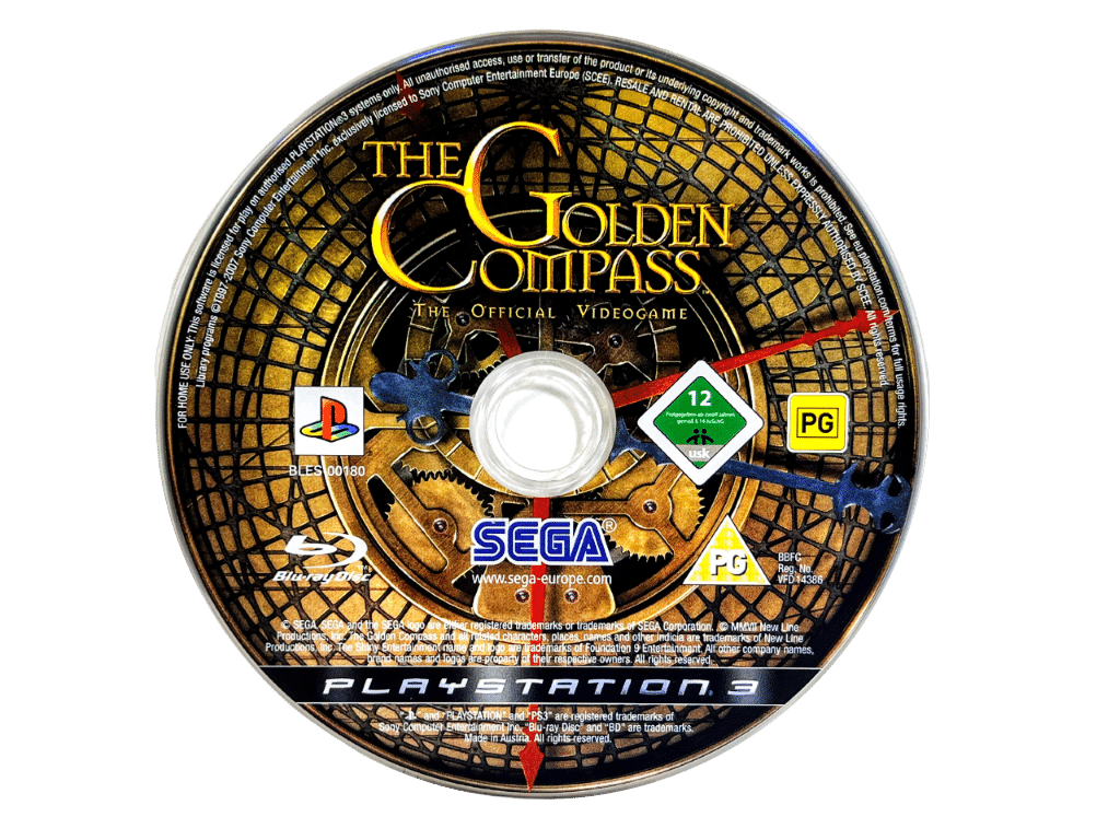 The GOLDEN COMPASS the video game for SONY PlayStation 3 / PS3. This preowned game disc is in excellent condition and includes pictured case + cover. Front page of cover has a small paper tear, but this is purely cosmetic, and the game disc inside is superb.