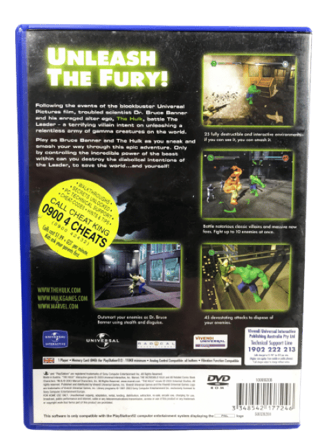 THE HULK The Video Game for SONY™ PlayStation 2 / PS2. Preowned game disc is in excellent condition with only the faintest of surface imperfections, and includes case + cover. Please note that the MANUAL IS NOT INCLUDED in this listing, but the game is self-explanatory, and the instructions are readily available online.