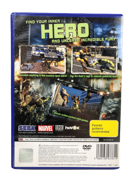 Excellent Condition & 100% complete with contents: The Incredible HULK for SONY PlayStation 2 / PS2. This preowned game comes complete with case, cover, manual / booklet, and game disc.