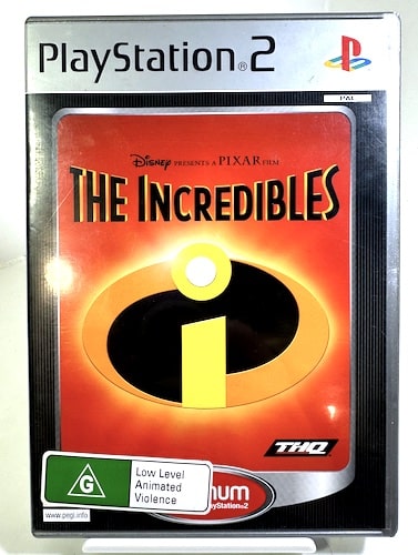 Disney Pixar presents The INCREDIBLES the Game for SONY™ PlayStation 2 / PS2. Preowned game comes with blue case, platinum cover and game disc. no manual included in listing.