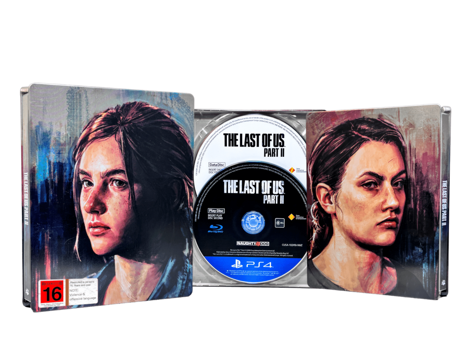 RARE AUTHENTIC LIMITED STEEL CASE COLLECTOR’S EDITION in Excellent Condition: The Last of Us Part 2 STEEL EDITION for SONY PlayStation 4 / PS4. This preowned authentic limited edition is in excellent condition with only the mildest of surface imperfections on the steel finish, with each of the steelbook + 2 x game discs. A lovely collector’s item. Refer photographs.