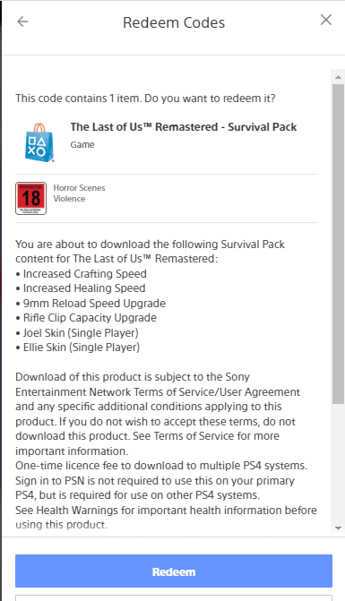 This preowned game is in excellent condition and includes original case + cover + game disc. Note that the two promo cards are not included, but they were just that: promotional only and are not required for gameplay or completion. The FULL Last of Us Remastered game is included on the game disc.