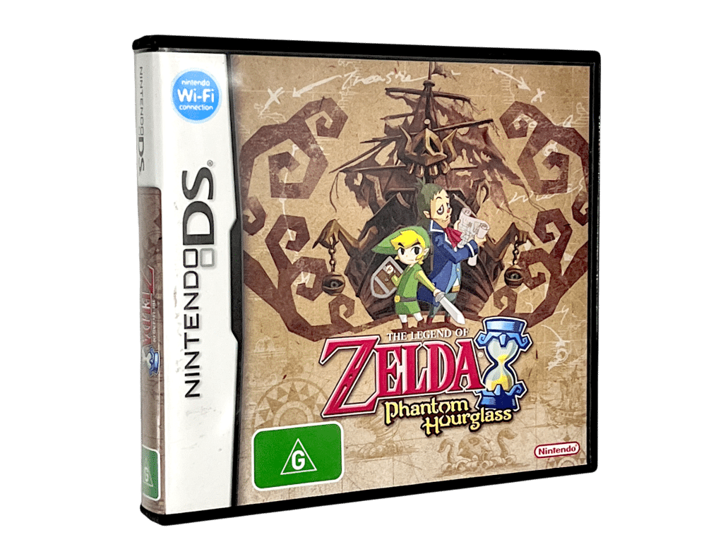 Phantom Hourglass brings touchscreen-based Zelda adventure to Nintendo DS as a direct sequel to Wind Waker. Players guide Link across ocean expanses charting courses between islands on the bottom screen while sailing unfolds above. The entirely stylus-controlled interface introduces innovative puzzle-solving and combat mechanics designed specifically for handheld play. The central Temple of the Ocean King presents a recurring dungeon challenge with time limits managed through the mystical Phantom Hourglass. Cel-shaded graphics capture Wind Waker’s visual charm on portable hardware. Online multiplayer introduces competitive gameplay where players steal Force Gems. This adventure successfully adapts console Zelda formula to DS capabilities with creative touchscreen implementation.