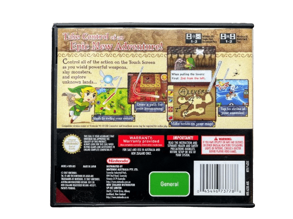 RARE FIND: Authentic New Zealand Edition in excellent condition & 100% complete with contents: The Legend of ZELDA Phantom Hourglass for NINTENDO DS. This game is preowned but in fantastic condition. A tidy and complete collector’s item.