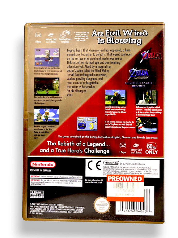 The Legend of Zelda: The Wind Waker (Limited Edition) – Gamecube. Legend has it that whenever evil has appeared, a hero named Link has arisen to defeat it. That legend continues on the surface of a great and mysterious sea as Link sets off on his most epic and awe-inspiring adventure yet.