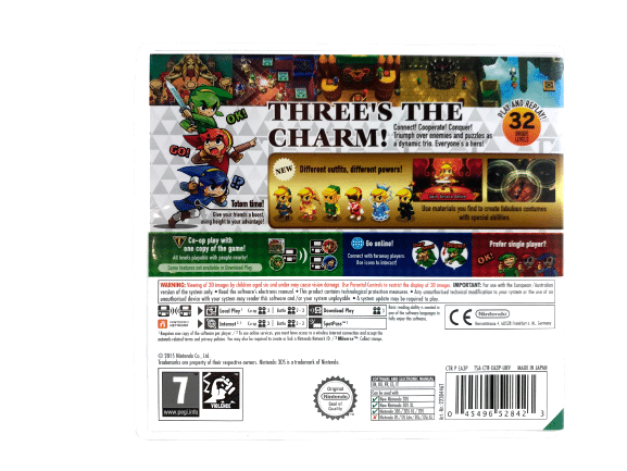 THE LEGEND OF ZELDA TRI FORCE HEROES for NINTENDO 3DS. This preowned game is in excellent condition and includes case + cover + game cartridge. Please note that the manual + booklet are NOT included in this listing, but the game is self-explanatory, and the instructions are readily available online.