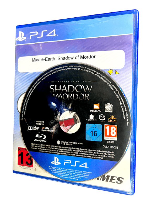 The Lord of the Rings Middle-Earth: Shadow of Mordor for SONY PlayStation 4. This preowned game is in excellent condition and comes inside case with EB Games cover (not original case).