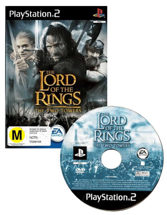 The LORD Of The RINGS The Two Towers for SONY PlayStation 2 / PS2. This preowned game disc is in good playing condition and comes inside an empty case. Please note that the original case is NOT included. Mild markings and superficial scratches, but these do not hinder game play in the slightest.