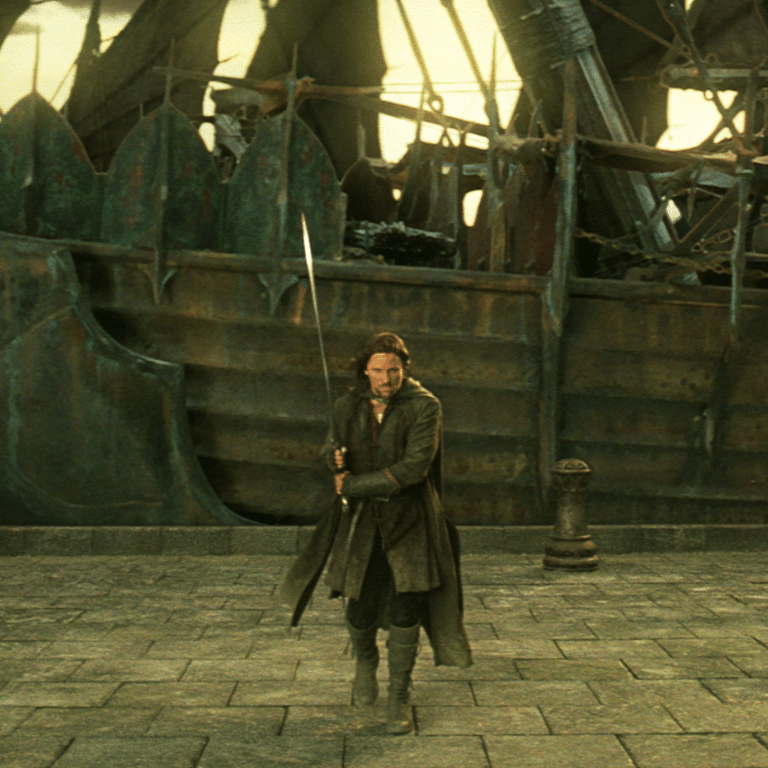 • Depicts Aragorn, striding into battle, as seen in The Return of the King;