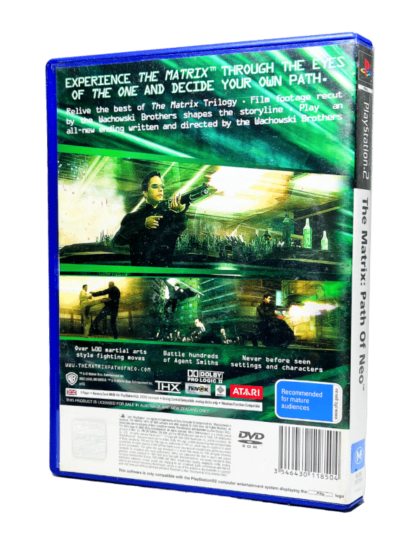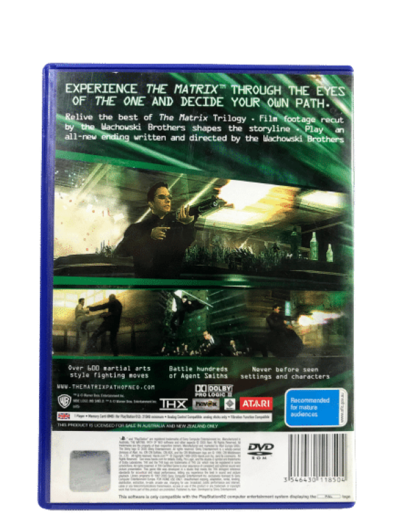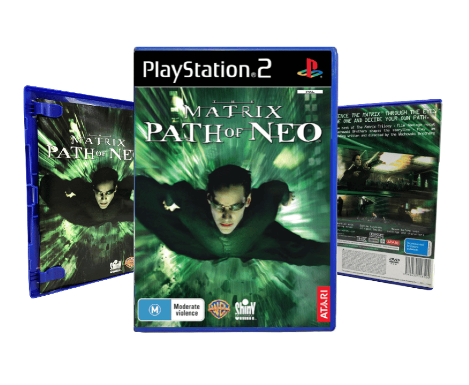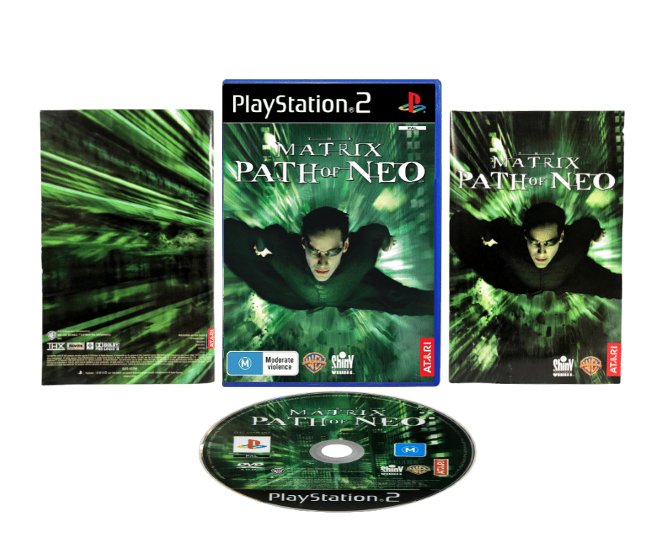 Mint condition & 100% complete with contents: The Matrix the Path of Neo for SONY PlayStation 2. This preowned game is in pristine condition and comes complete with case, cover, instruction manual / booklet, and game disc. A tidy and complete collector’s item.