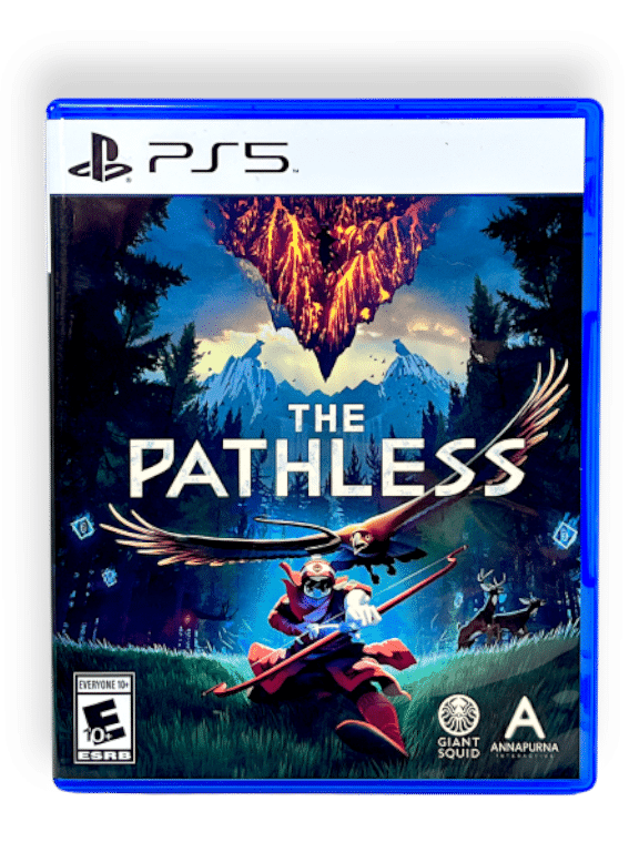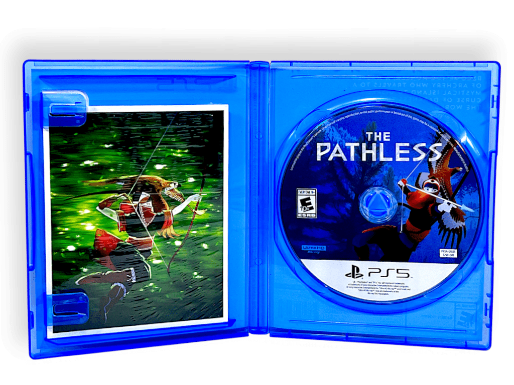 THE PATHLESS for SONY PlayStation 5 / PS5. But in mint condition and with brand new, plastic-sealed, official collector’s cards bundled inside, along with the game disc.