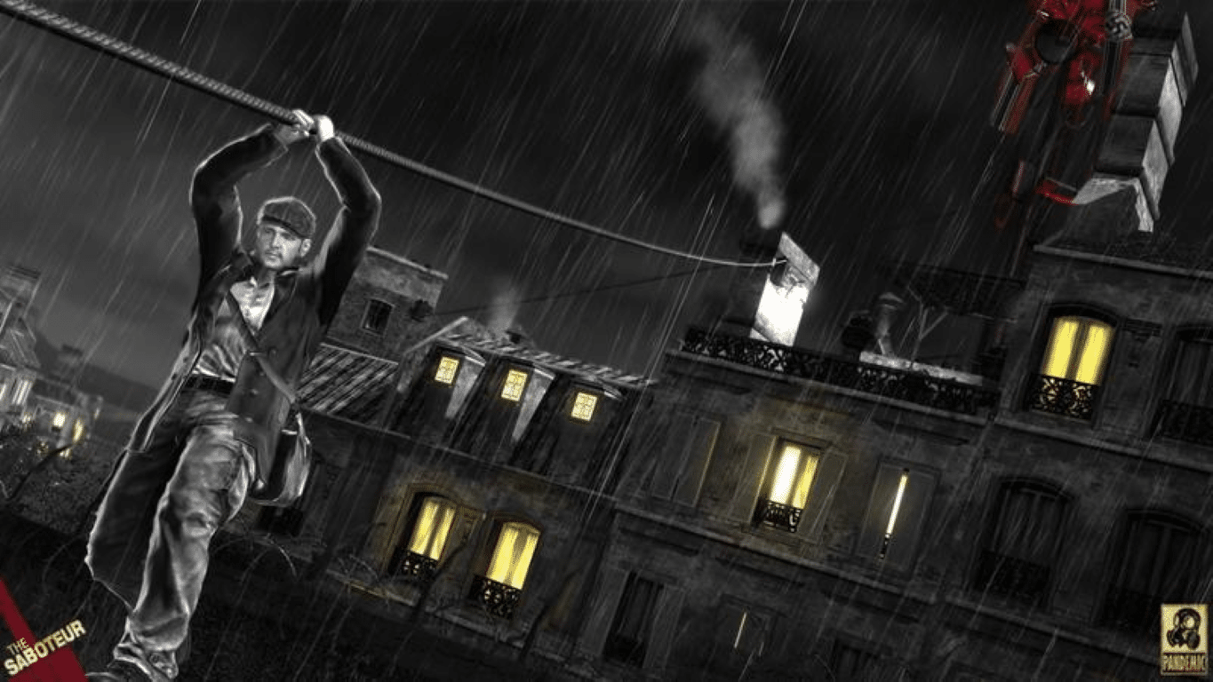 - Will to Fight – The Saboteur introduces a innovative new feature that is both an iconic visual style, and a compelling gameplay element. See and feel Paris change around you as you progress through the game. Go from a dark and oppressed black and white policed state, to a bright and inspired world where the citizens fight back..