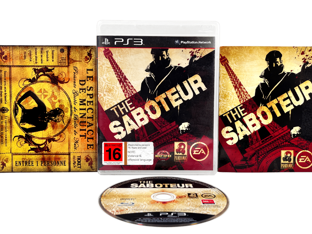 Mint Condition & 100% Complete with Contents: The SABOTEUR The Official Video Game for SONY PlayStation 3 / PS3. This preowned game is in Pristine condition – a very tidy collector’s item – complete with case, cover, manual / booklet, and game disc.