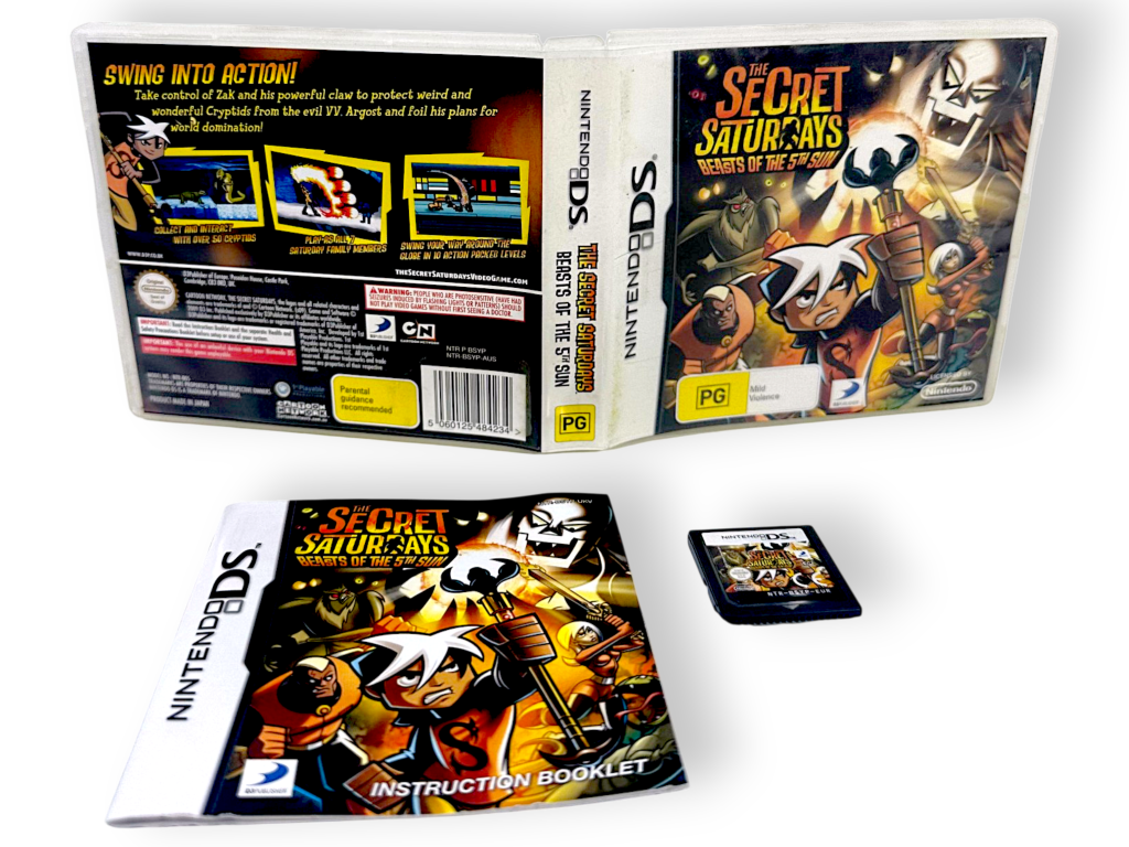 Excellent condition & 100% complete with contents: The Secret Saturdays: Beasts of the 5th Sun for NINTENDO DS. This preowned game is in superb condition and comes complete with case, cover, manual / booklet, and game cartridge.