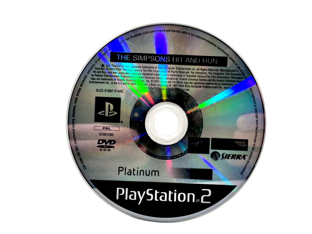 The Simpsons: Hit & Run (PS2) *DISC EXCELLENT*. This pre-owned game is in excellent condition with only faint disc surface imperfections, and comes inside an empty blank case. Please note that the original case is NOT included.