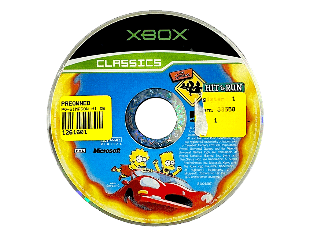 The Simpsons: Hit & Run (Xbox – Disc Only). This pre-owned original Xbox game is in good playing condition with light scratches that do not hinder performance or gameplay in any way. This disc comes inside an empty blank case. Please note that the original case is not included here.
